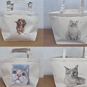 ペットの写真をデッサン画にして、トートバッグにプリントする専用ショップです。